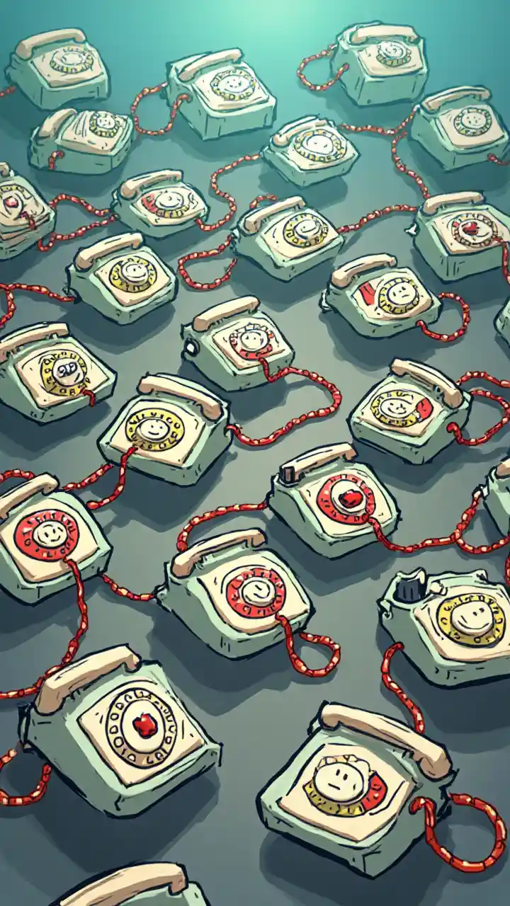 BrooklynUma imagem de desenho animado de muitos telefones tocando.
