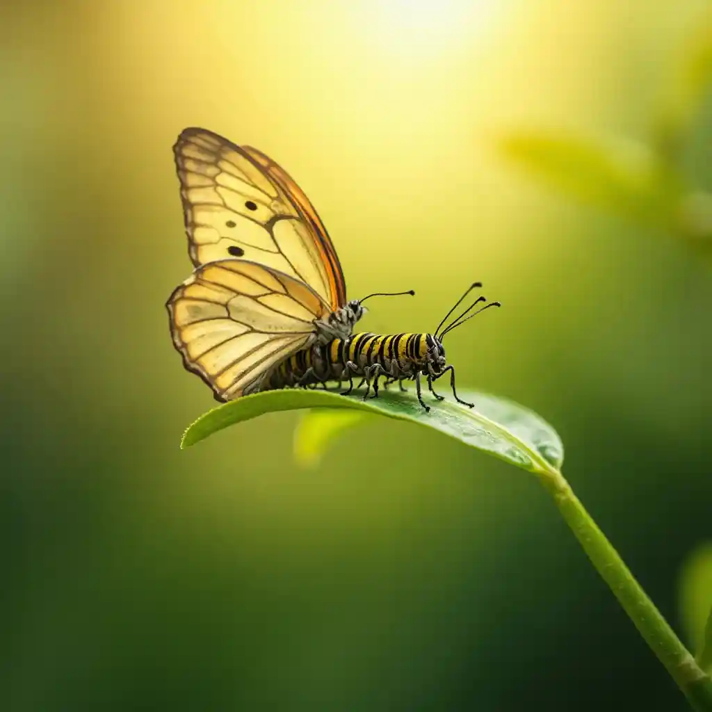 uma lagarta se tornando uma borboleta; fundo brilhante