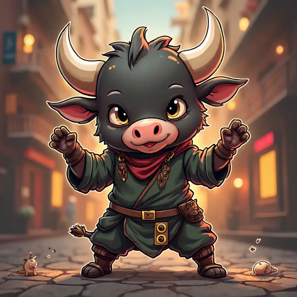 Um touro giro que sabe kung fu e produz música eletrónica com baixo pesado.