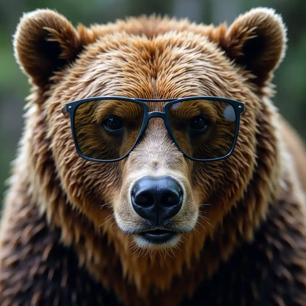 JaydenCara de urso-griz de perto com óculos de sol refletores
