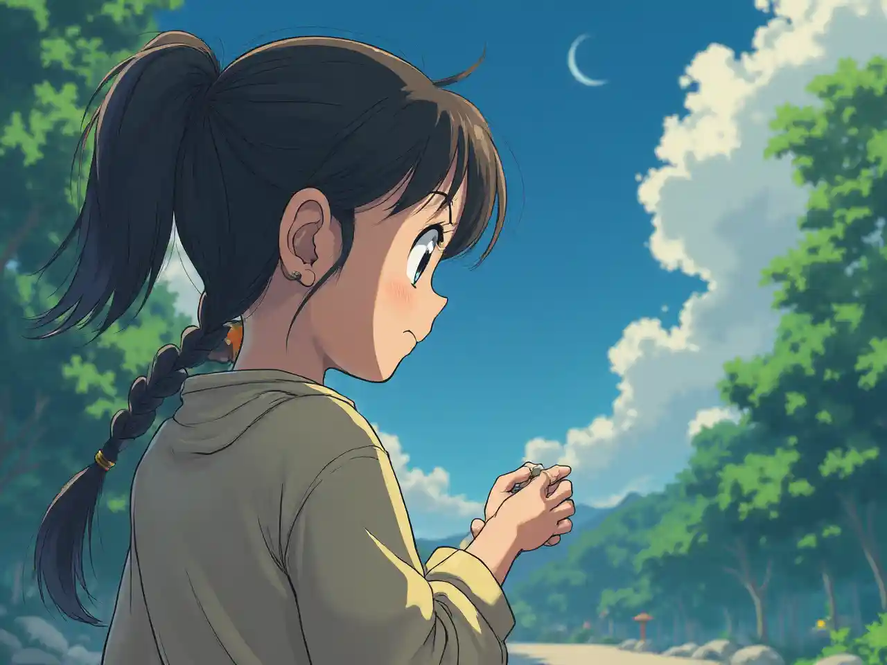 CalebUma rapariga de quimono e dragão azul, no fundo, longe do Monte Fuji. Miyazaki Japão desenho animado detalhes. imagem clara, nítida e colorida de alta resolução.