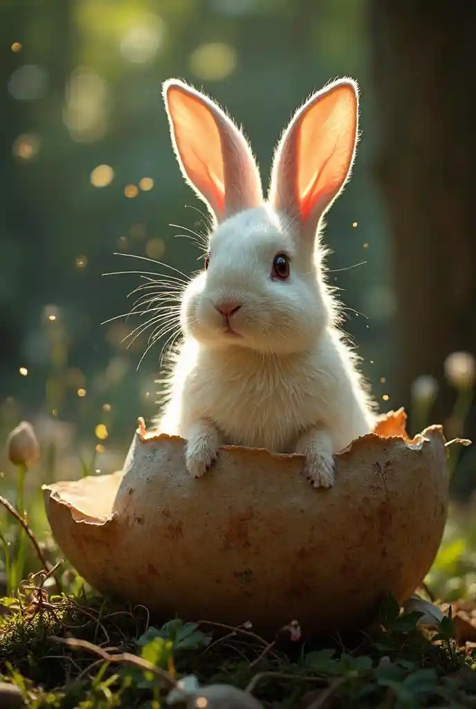 BenjaminUm velho livro de fadas está a abrir, no interior apareceu um coelho branco a emergir da um ovo de Páscoa, luz cintilante