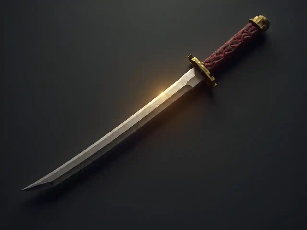 Katana do Minecraft. Mão escura com proporção dourada. Arma demoníaca
