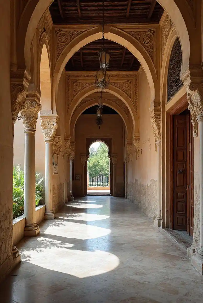 Palácios mouros em Espanha, arcos sussurrando sultões.