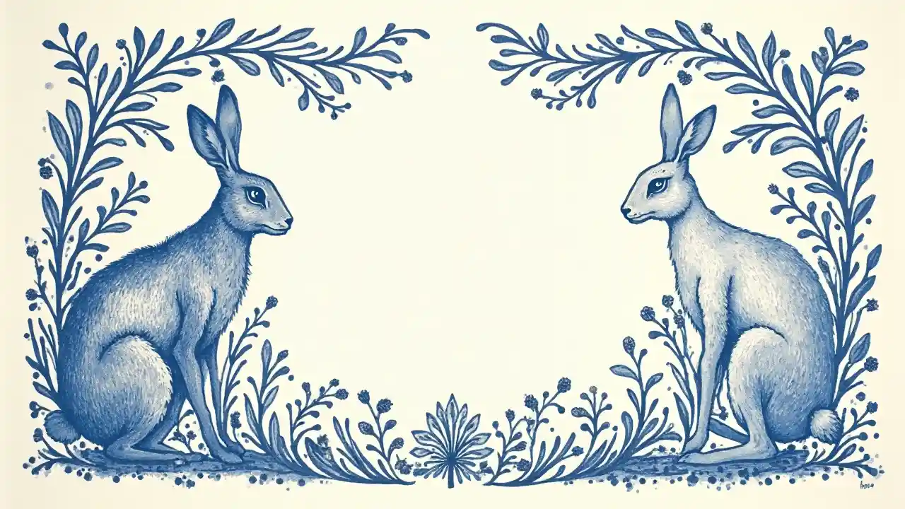 Lepre e Flores Folclóricas Impressão de letra no estilo de William Morris
