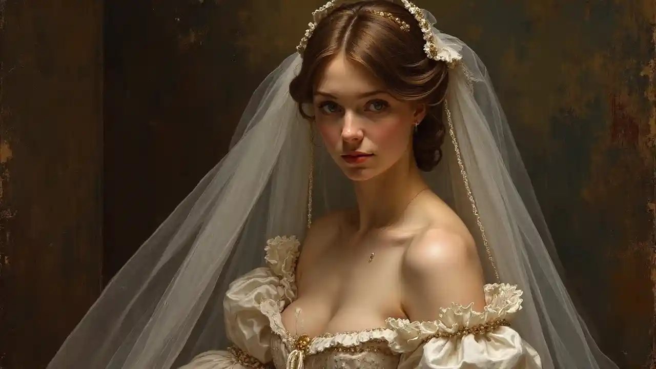 AdelineRenascença, Noiva, Princesa, Casamento, Pintura a Óleo, Cabelo Castanho