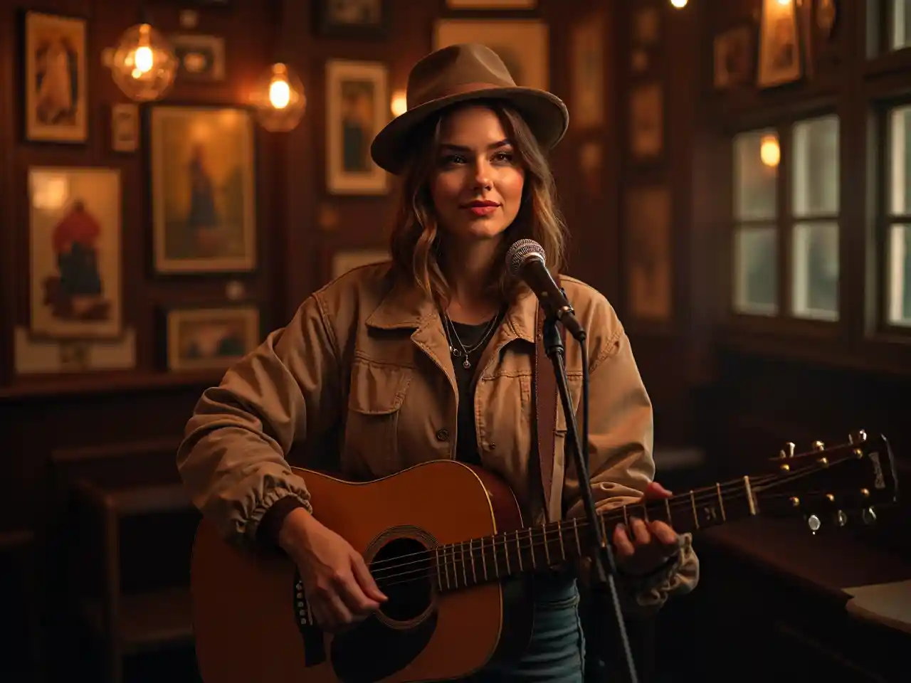 Cantora Cautivadora num Bar Quente com Baladas Sinceras