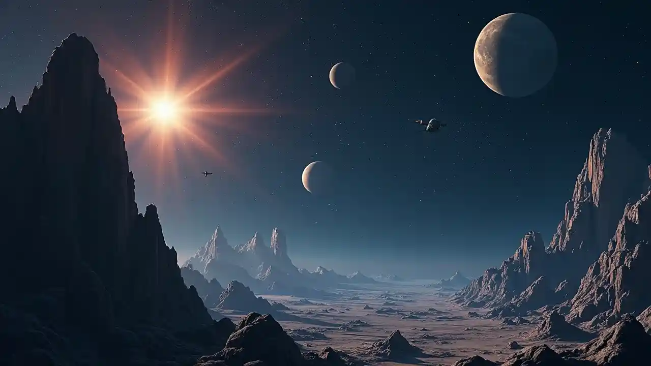 HarperCinemática espacial com uma estrela, cinco aviões, três luas e cintura de asteroides