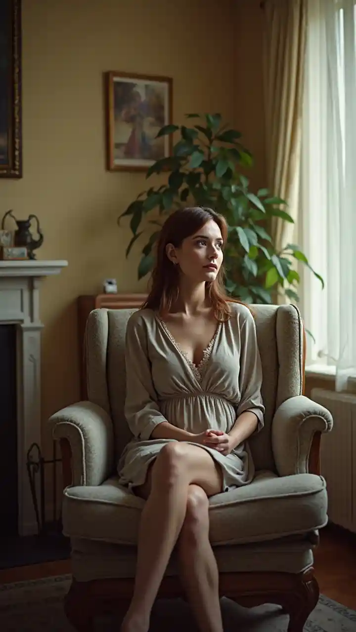 WyattA mesma mulher sentada na cadeira da sala de estar