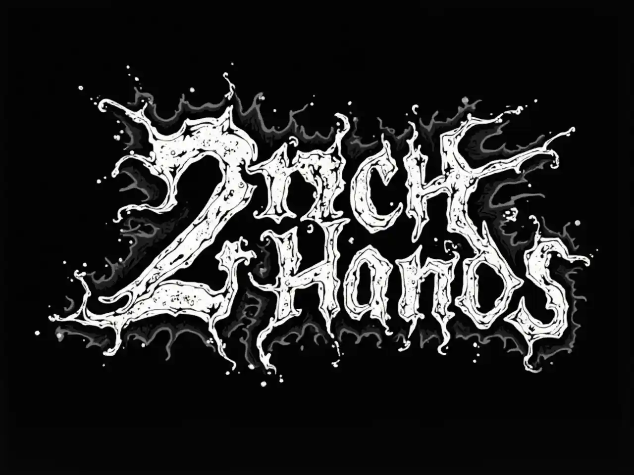 KinsleyСоздайте логотип блэк-метал группы с названием "Вторые Руки". Шрифт в стиле 80-х. Белые буквы на черном фоне. Стиль комиксов