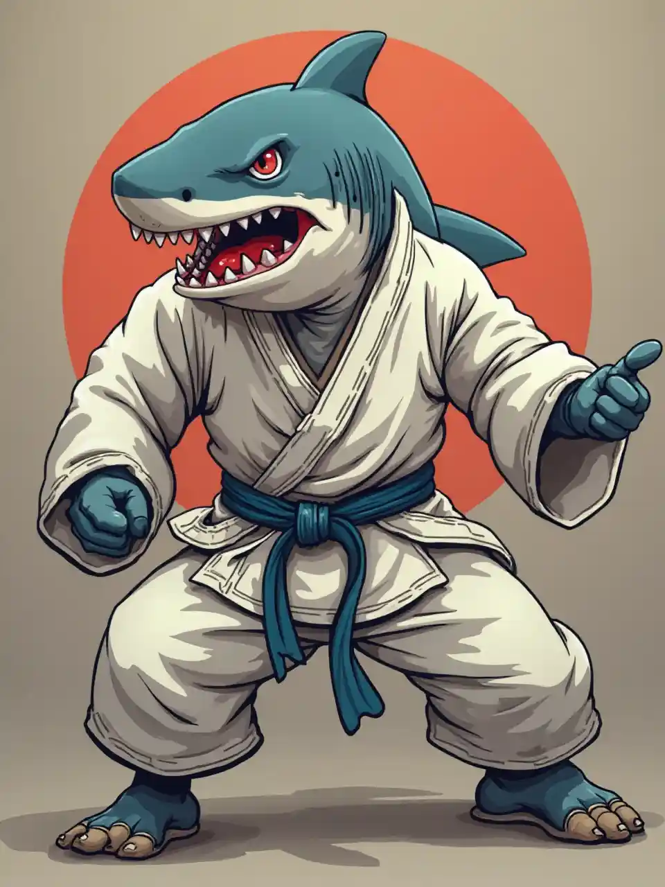 Гуманоидная акула в кимоно-джудо-позе