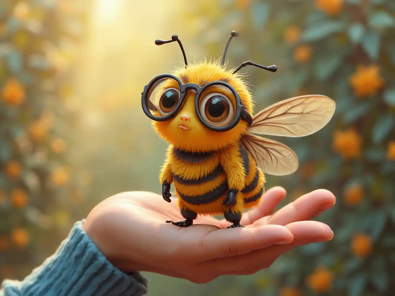 Уникальная и очаровательная концепция, оживленная в виде масляного рельефа, на котором изображен милый супермаленький персонаж мультфильма, который носит очки и стоит на руке красивого мальчика. высокое качество, очень детально. 8к