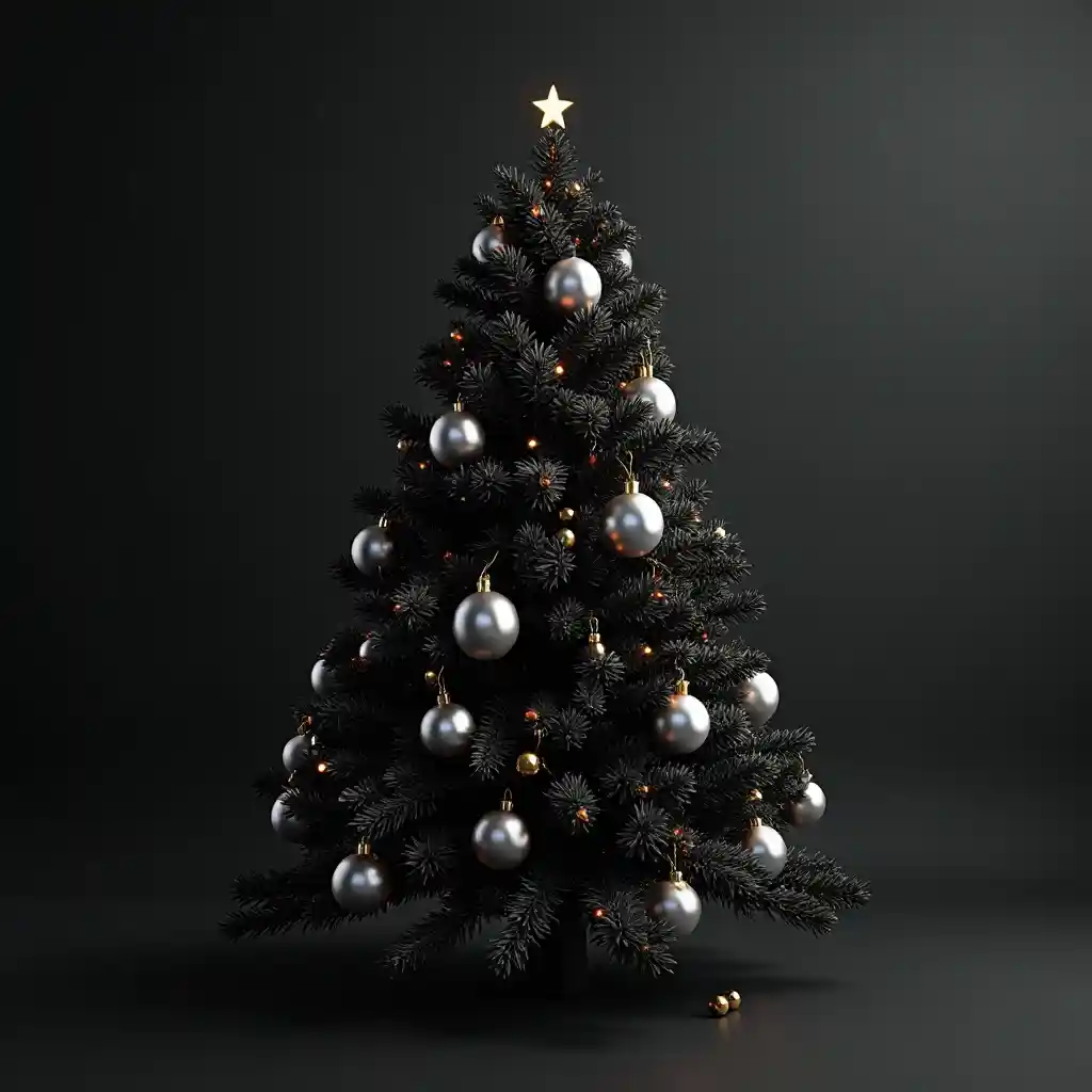 IsaiahЧерная рождественская елка с серебряными рождественскими шарами, 4k, full hd