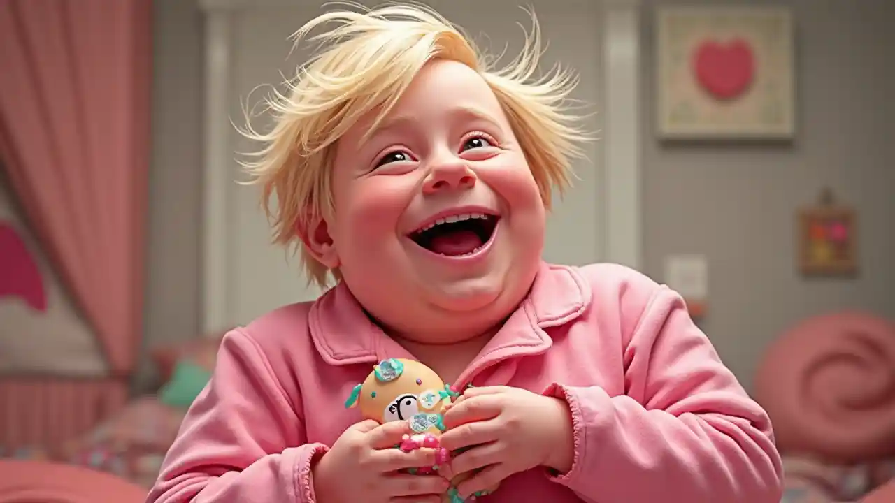 JaceБорис Джонсон в розовой пижаме смеется, держит в руках милую игрушку, яркие и насыщенные цвета, подробный портрет, реалистичный стиль