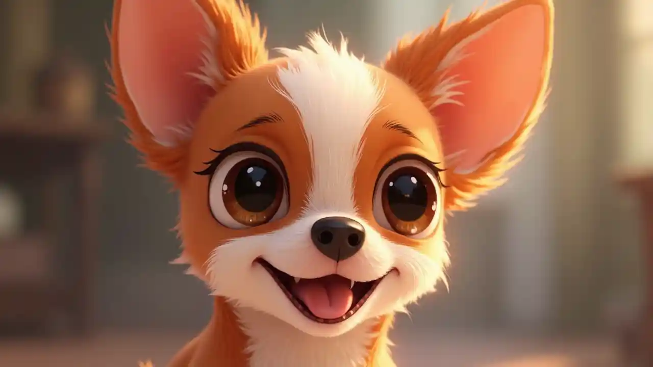 Плакат Диснея с красно-белой чихуа с большими глазами