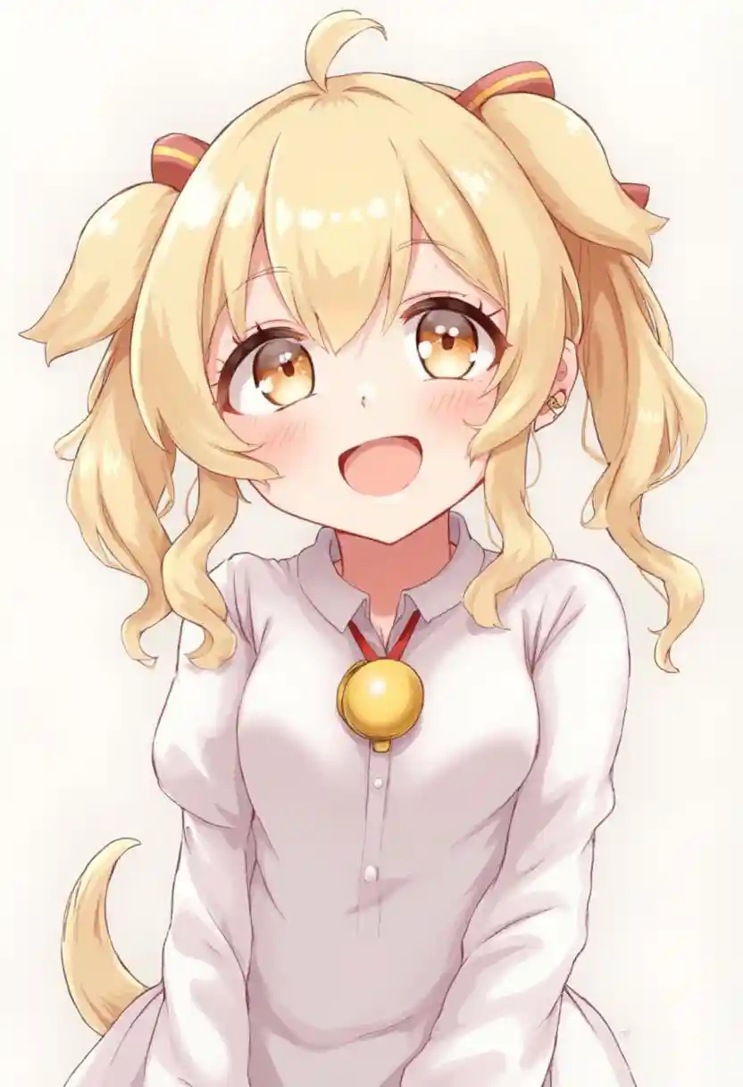 AdelineЖенщина, соло, Лоли, собачка, собачьи уши, веселая, колокол, серьги, желтые глаза, волосы, блондинки, длинные волосы, короткие хвосты, волосы, плавающие