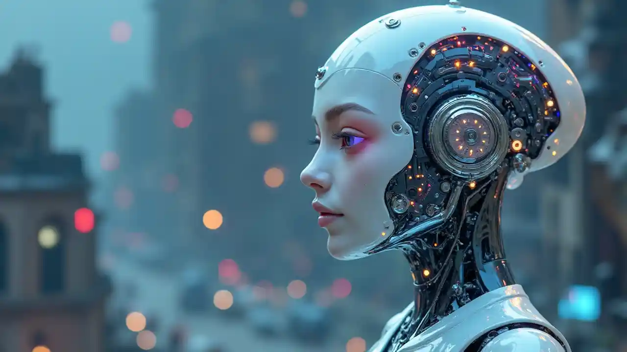 Сюрреалистическое исследование красивого инопланетного робота в катастрофическом городе