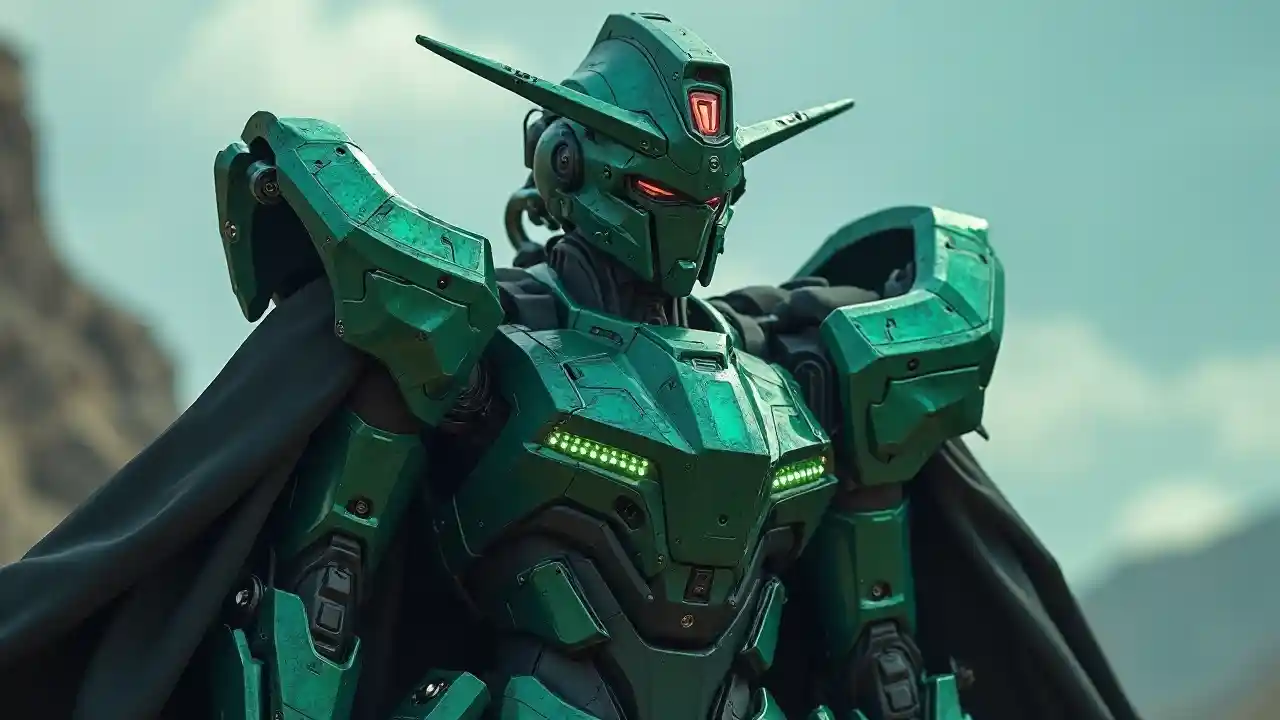 Научно-фантастическая гундам-эксия со смарагдами в черном плаще