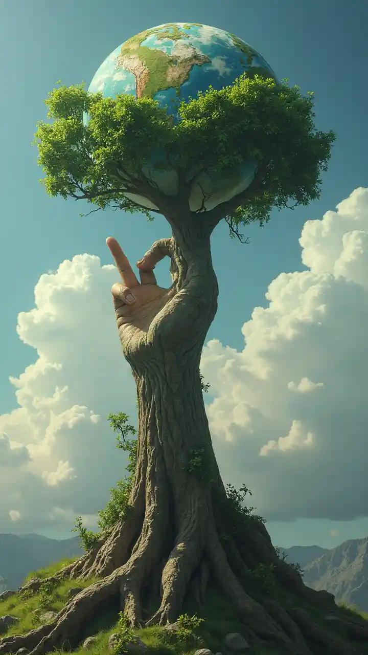 LincolnФантастический сюрреализм Планета Земля, где выступает рука в форме дерева, дерево подняло средний палец