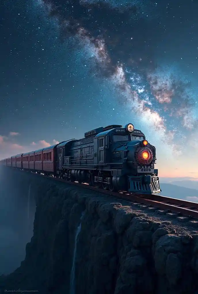 SkylarКосмический корабль в форме поезда, 10 вагонов, прекрасный самолет:2.0), на фоне космос и Млечный Путь:1.6), шедевр, высокое качество, сверхвысокая резо