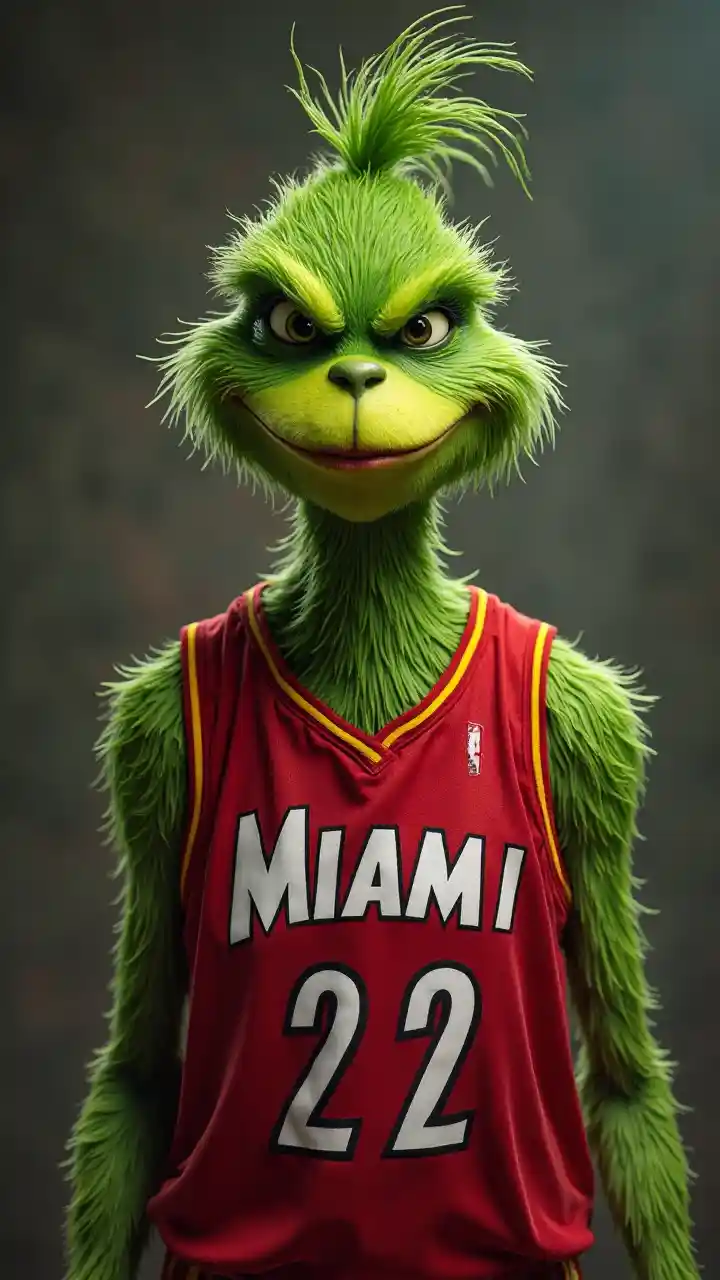 Гринч в футболке "Майами Хит" с номером 22 и сделать его прозрачным