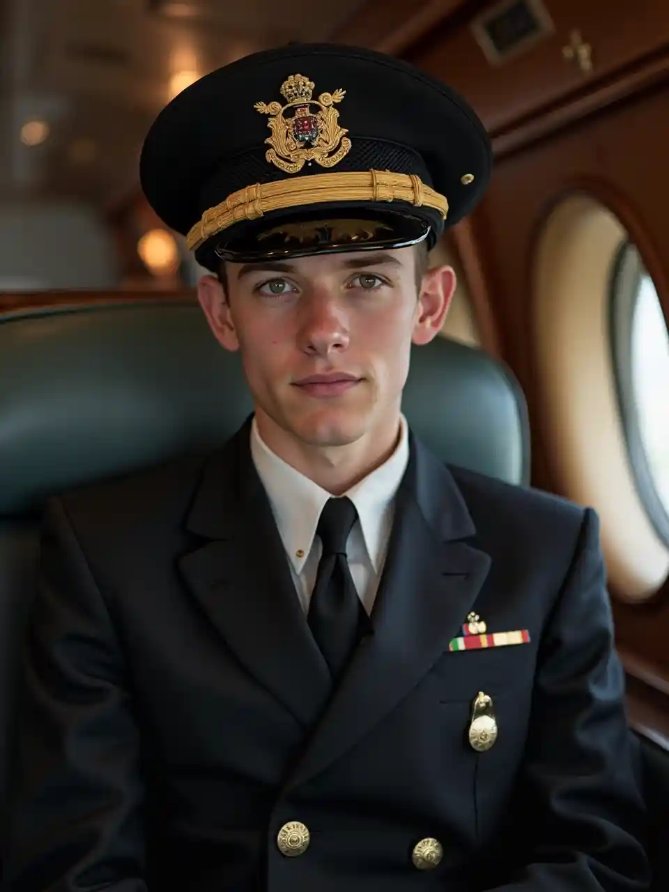Джек Доусон снимает Титаника, 18-летнего подростка, он носит форму генерала США. он был в салоне роскошного самолета