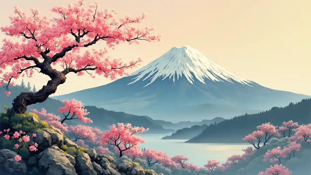 BettyСтарые японские искусства горы Фудзи с цветом вишневого дерева