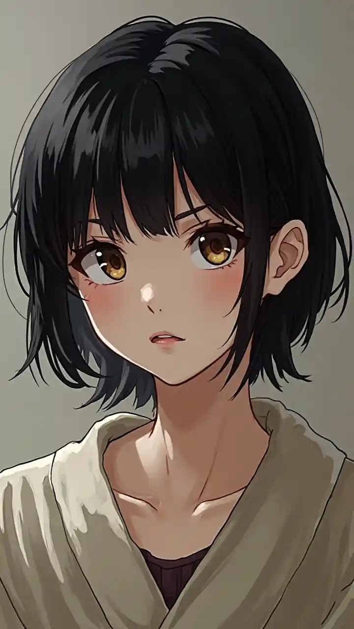 Японская девочка с короткими черными волосами