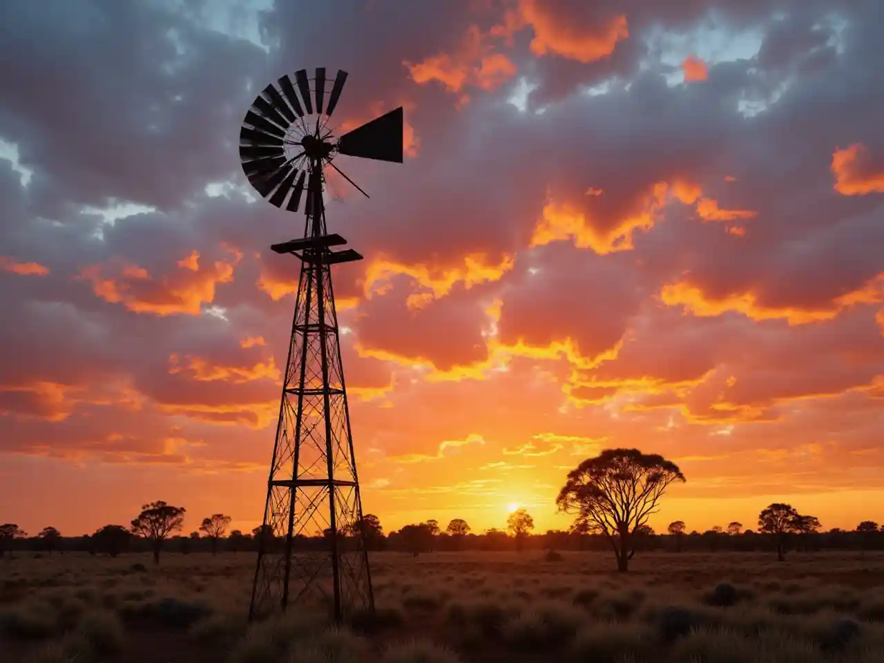 AudreyАвстралийская аутбах ветряная мельница закат солнца