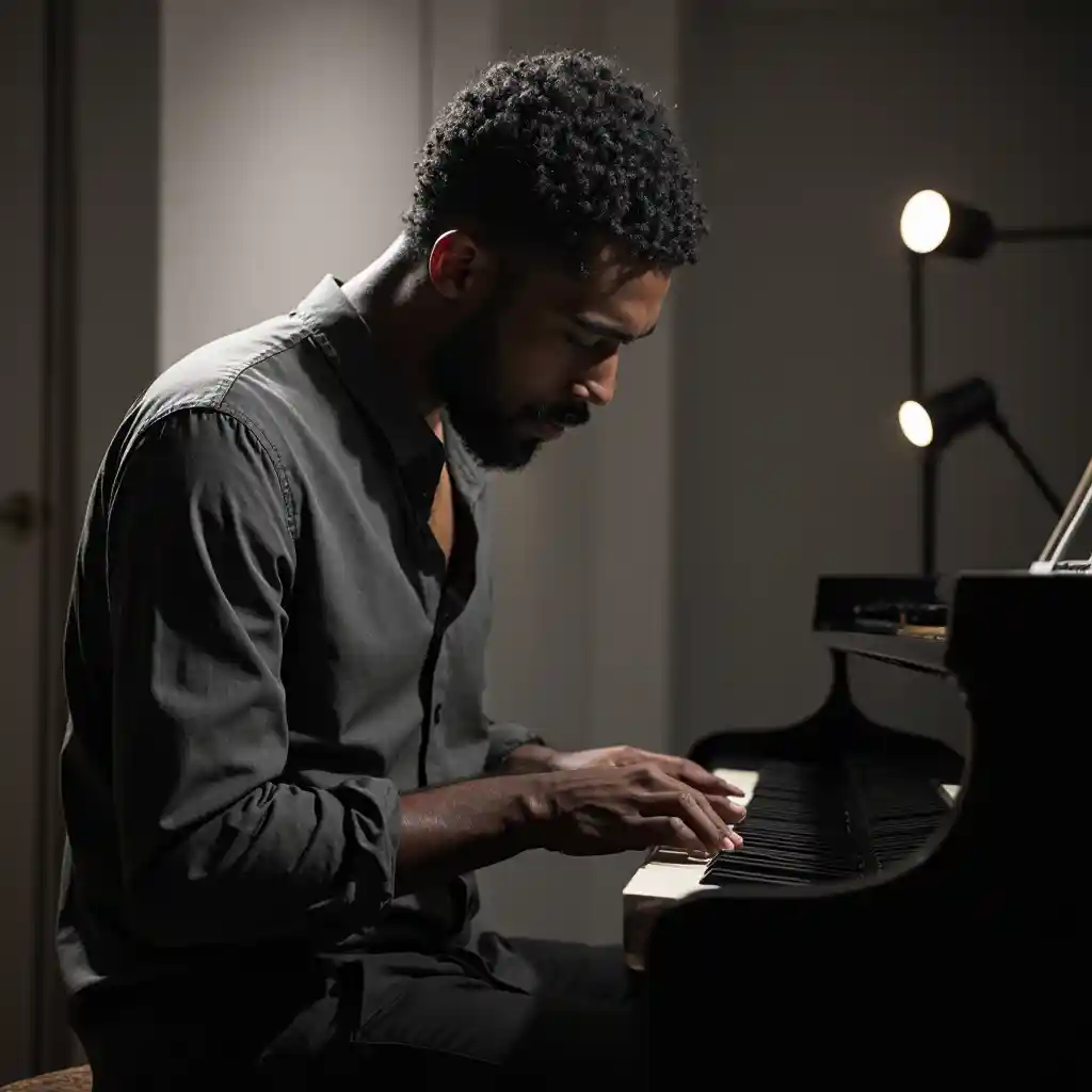 Талантливый чернокожий человек, играющий на пианино с любовью