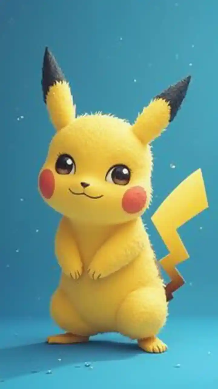 Кошка Пикачу на синем фоне