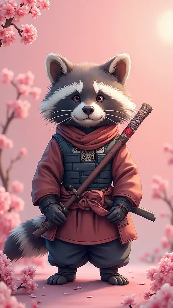GraysonСамурай-ракун, розовый сакура, крошечный