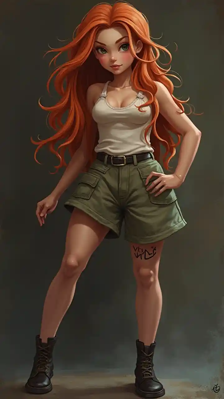 Рыжеволосая девушка в действии позирует