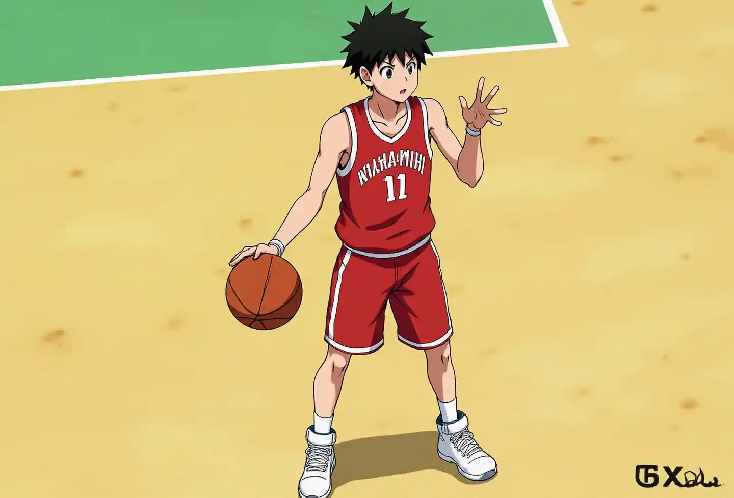 Сакураги Ханамичи играет в баскетбол в спортивном костюме