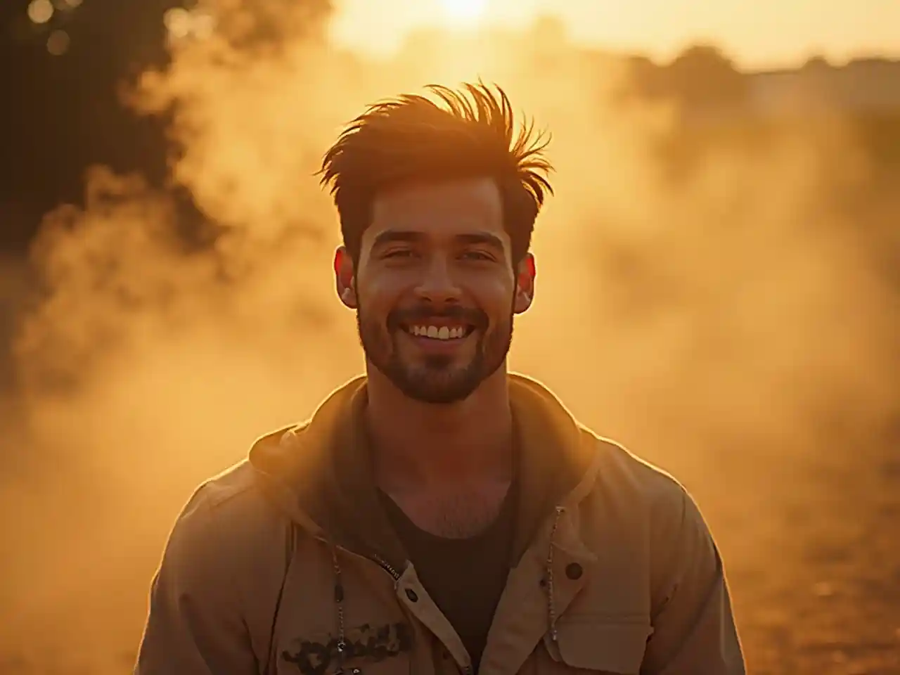 Парень улыбается, как водоворот дыма