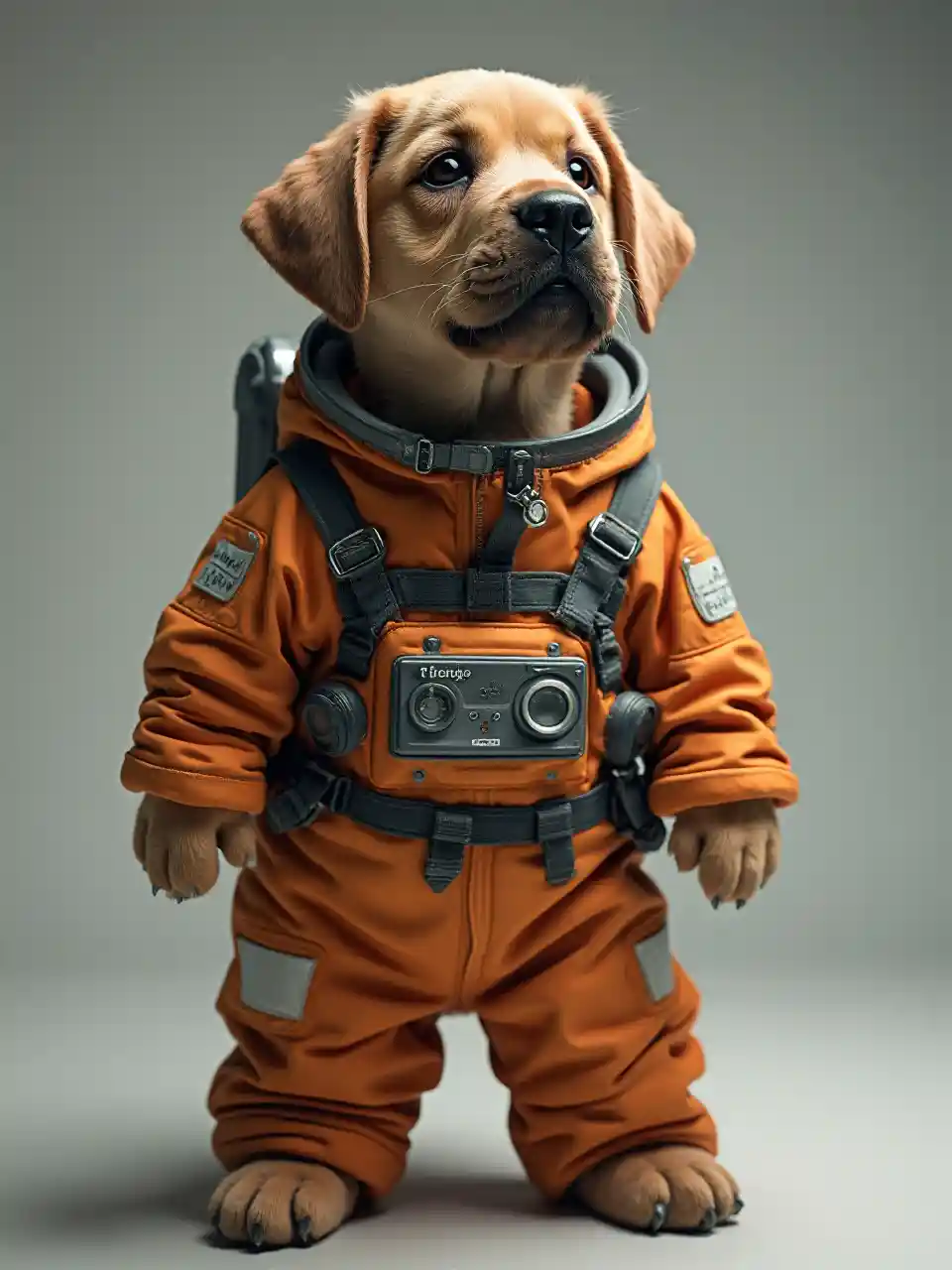 Избыточный вес лабрадора в космическом костюме