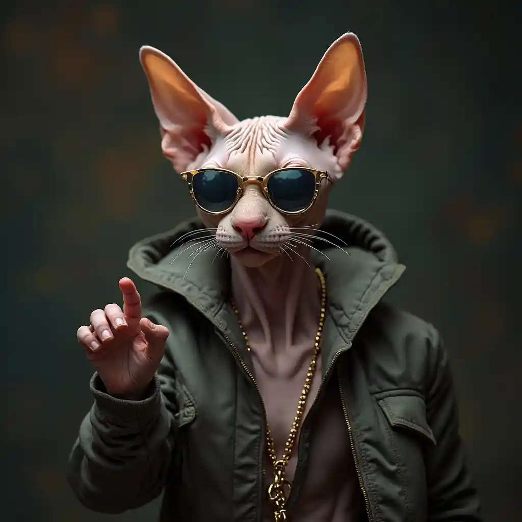 Кошка Сфинкс в роли рэпера