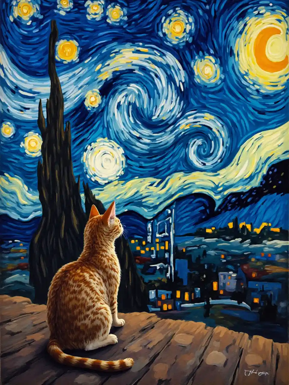 Звездная ночь Ван Гога с кошкой