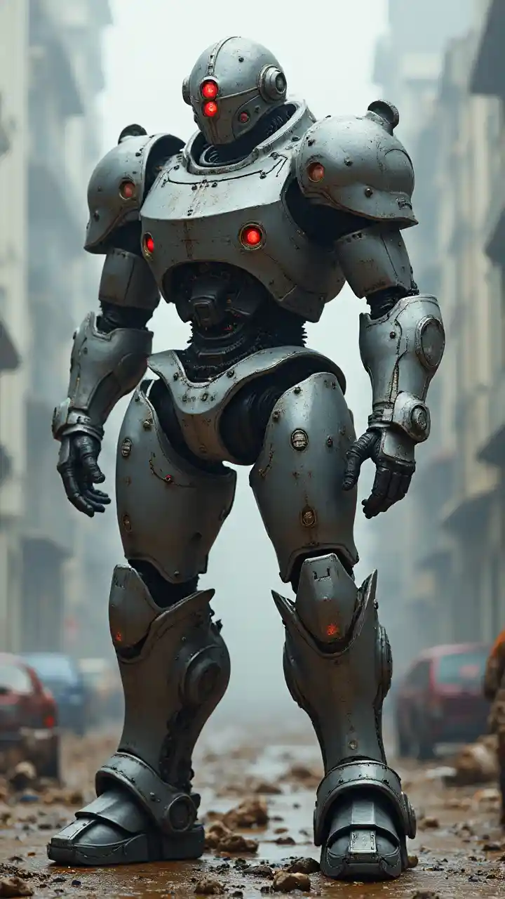 RobinСтальная броня, красные глаза, робот-андроид, гигант