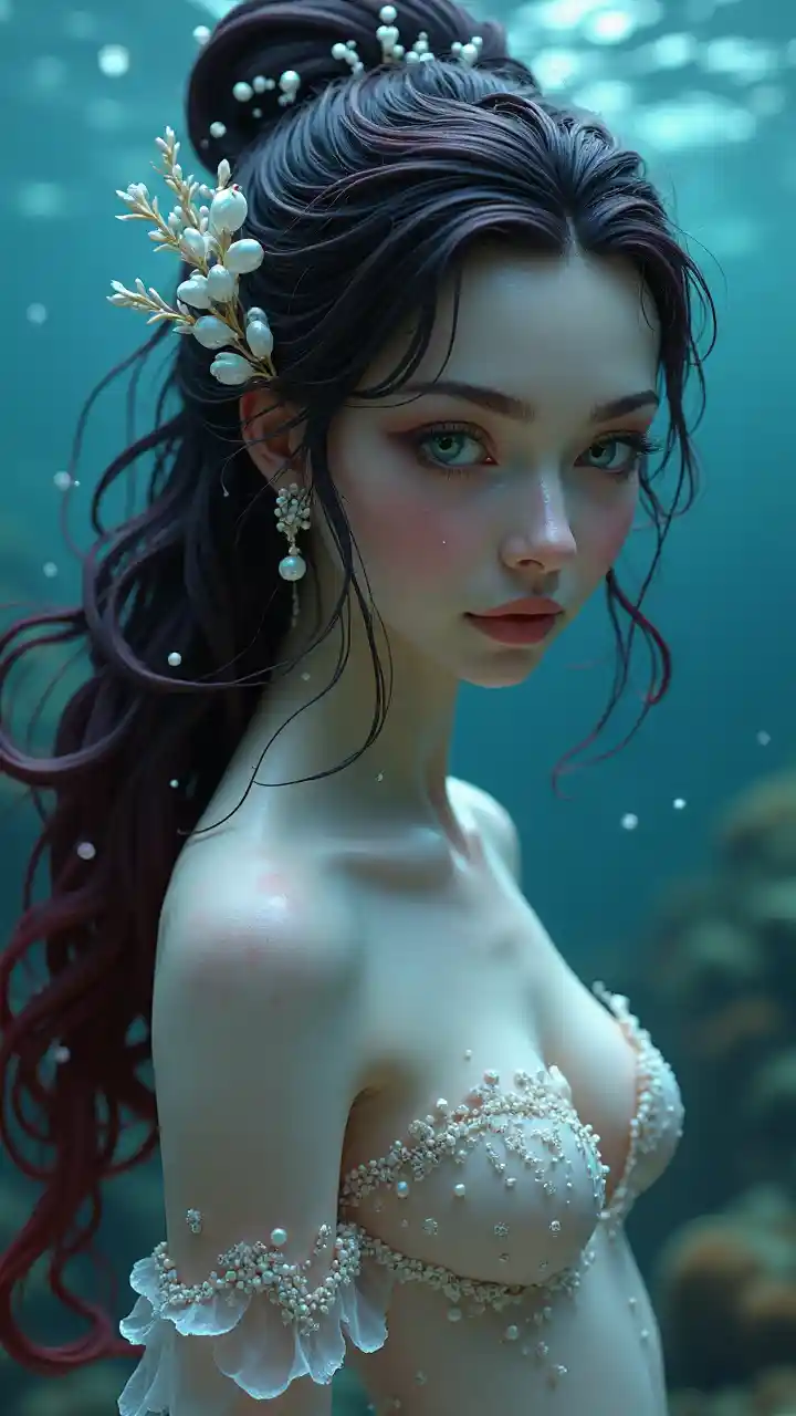 Капризная подводная фея с сияющей красотой и сюрреалистической эстетикой