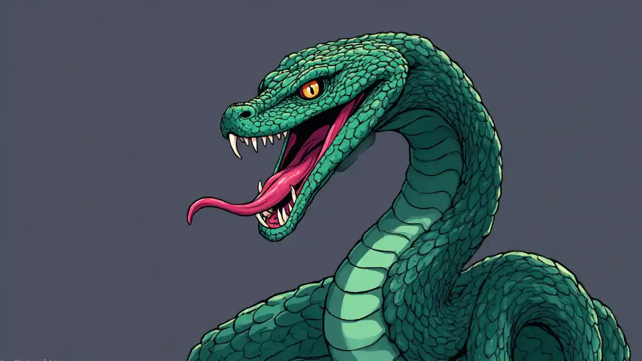 Змея блестящие губы бросают поцелуй зеленый и фиолетовый фон ретро аниме