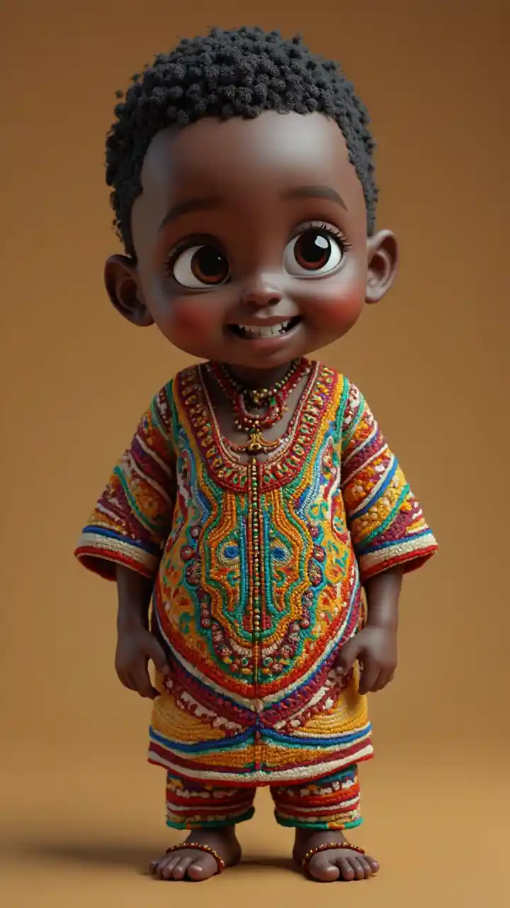 En ung afrikansk pojke står stolt i sin traditionella broderade skjorta, omgiven av levande färger och invecklade mönster. 8K Ultra HD-upplösningen fångar varje detalj av hans outfit, från de delikata stygningarna till de rika texturerna. Med hjälp av oktan rendering, kommer denna 3D-bild till liv i enastående isometrisk bild.