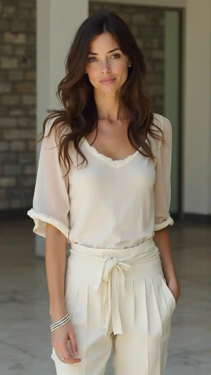 PenelopeAnne Hathaway, med en hel kropp i små vita kläder