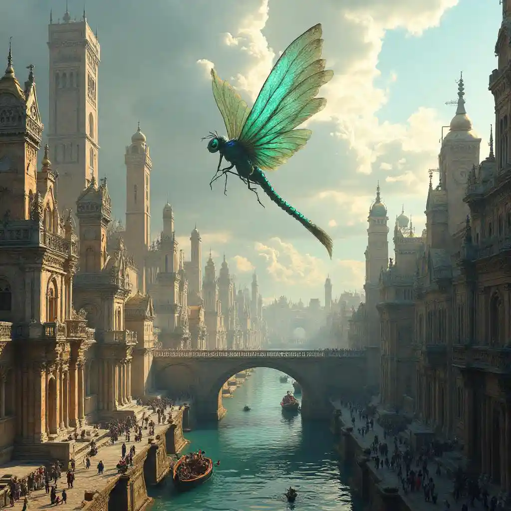 Den legendariska Atlantis. Dubbel exponering, en blandning av två stilar av episk fantasi och urban fiction. Höga palats, flygande anordningar med glänsande libbenvingar. Stora statyer av okända gudar. Gatorna är fulla av folk. Kanaler med gondoler. Öppna broar. Hyperrealism.