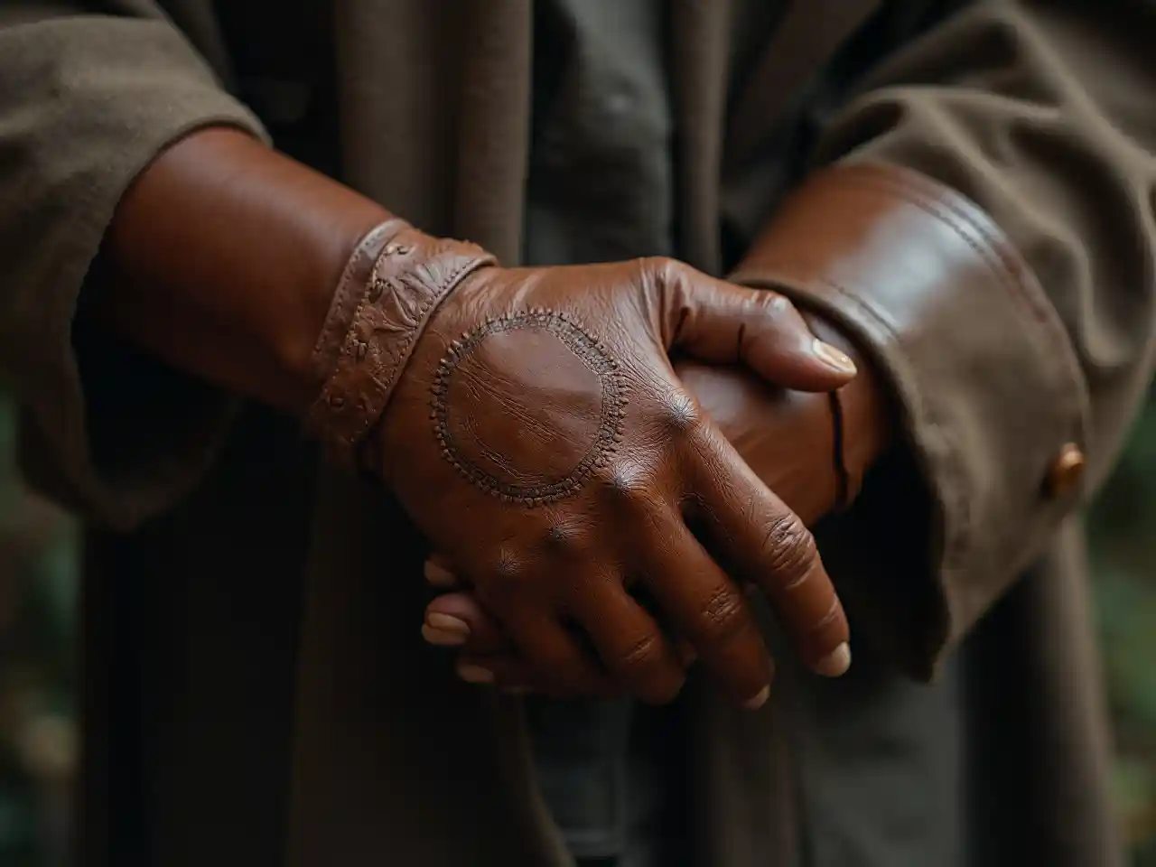 JocelynSt Michael ger en hand i en brun handske → bruna läderhandskar