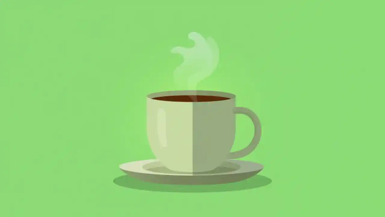 Illustration, platt design, enkel form, vektor, dominerande färg grön, kopp kaffe