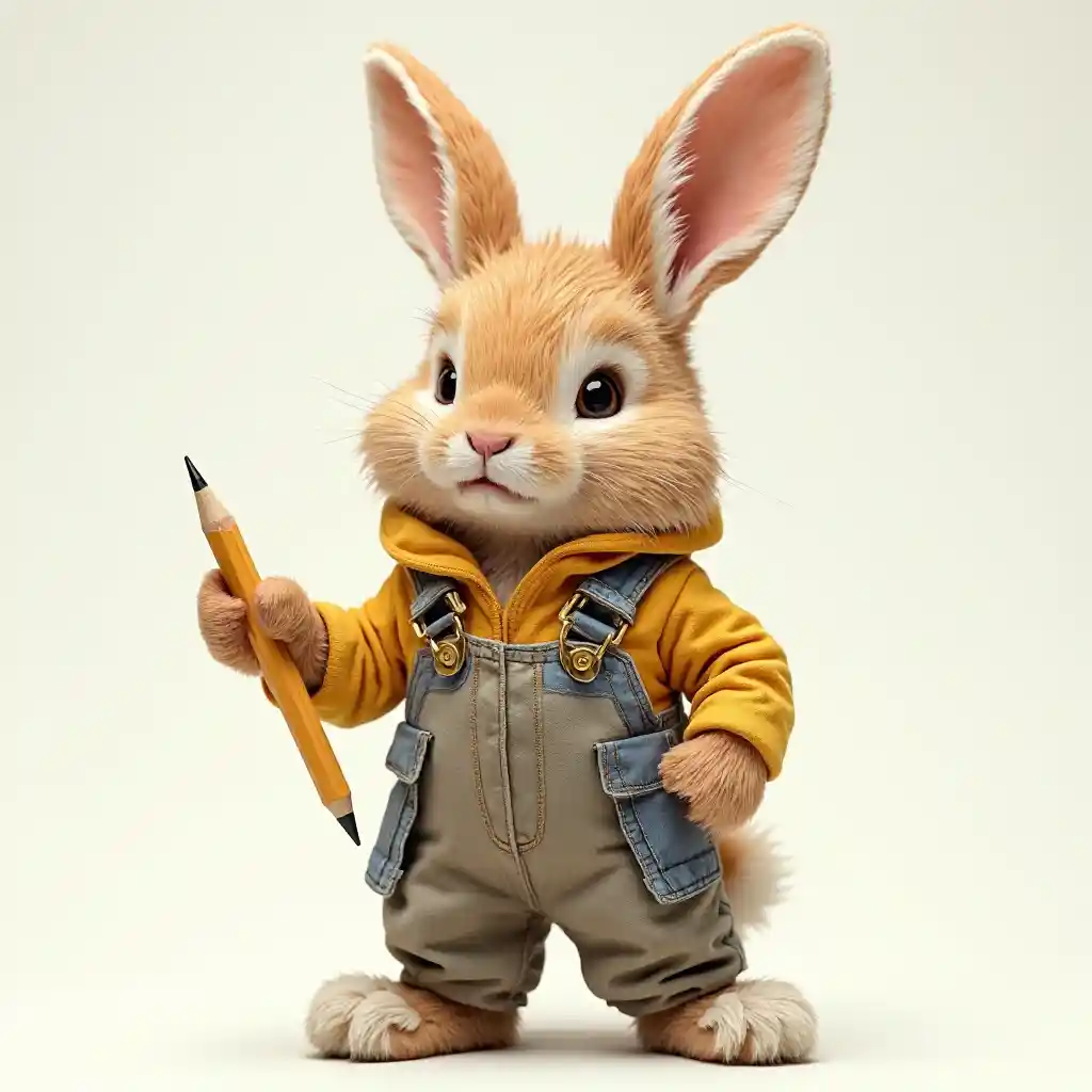 Kanin som bär arbetskläder, bär en blyerts vid örat