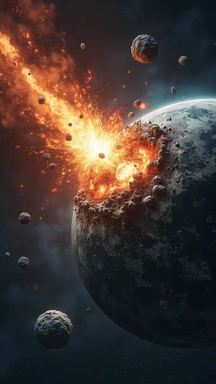 Kometer och asteroider kraschade mot jorden började bryta i bitar och sedan exploderade och försvann i rymden.