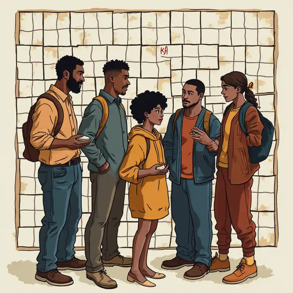 5 svarta och bruna människor i en liten grupp framför en bild av korsord för Crossword puzzle bokomslag för KDP
