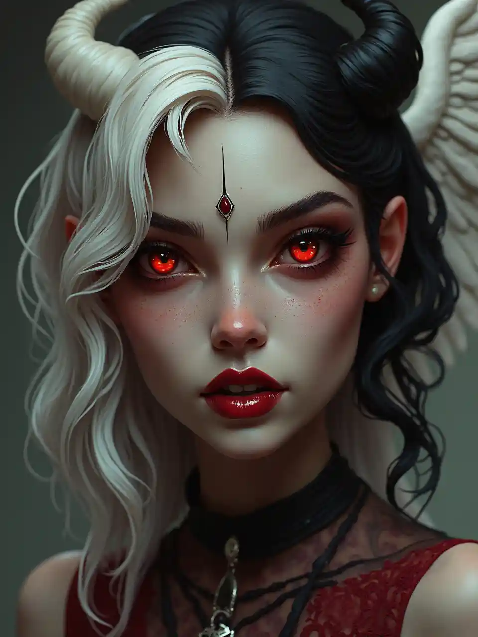 Slayher, en humanoid varelse, en fusion av en ängels framträdande och en demonisk framträdande med ett stort leende, ett förfärligt leende, skarpa tänder och en lång svart ögon, orange med vitt hår, svarta horn, vita strålar, två stora vingar av en ängel och en demon som form av en pil, med ett elegant kläder